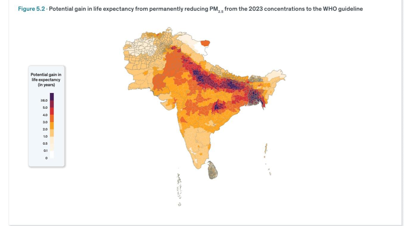 The report highlighted that increased PM levels could reduce the life expectancy of an average resident in India by 3.5 years, while the residents of Delhi and its surrounding area could live up to 8.2 years longer if particulate concentration were brought in line with WHO guidelines. NCT of Delhi has the highest concentration of fine particulate matter of 2.5, with 88.4 micrograms/cubic metre (µg/m³).